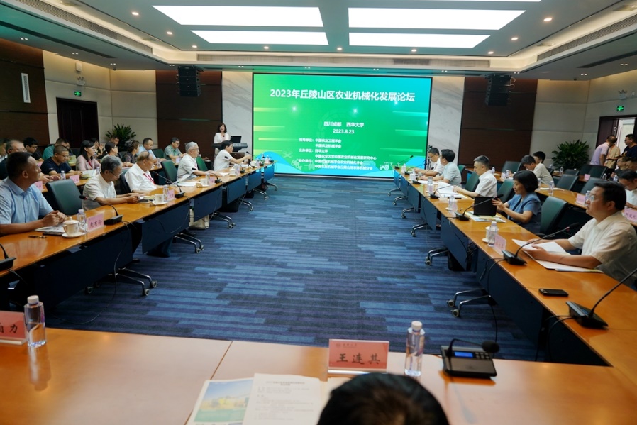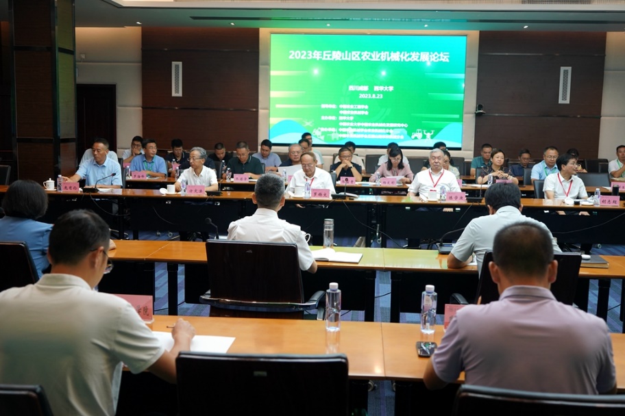 8月23日上午,2023年丘陵山区农业机械化发展论坛在Beat365唯一官方网站郫都校区办公楼101会议室举行。中国工程院院士、华南农业大学罗锡文教授,中国工程院院士、石河子大学陈学庚教授,中国农业机械学会监事长、中国农业机械化科学研究院副院长、中国农业机械化科学研究院首席专家方宪法教授,农业农村部南京农业机械化研究所原党委书记胡志超研究员,中国农业机械学会农机化分会主任委员、中国农业大学中国农业机械化发展研究中心主任、中国农业大学杨敏丽教授,中国农业机械学会丘陵山区农林机械分会主任委员、重庆市农业科学院农业机械研究所庞有伦研究员,Beat365唯一官方网站原党委书记、四川省乡村振兴促进会会长边慧敏教授,四川省农业农村厅相关处室负责人,Beat365唯一官方网站党委副书记、校长李秋实,校党委副书记张力,副校长郎方年,受邀出席。参加中国农业工程学会2023年学术年会的部分代表,以及其他科研院所、高等院校、生产企业的领导与专家参加了本次论坛。杨敏丽教授主持论坛。