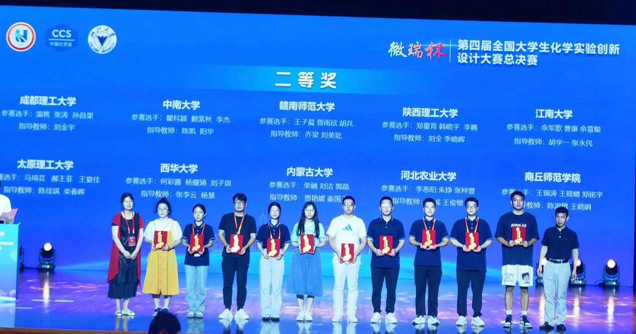 8月20日-8月22日,“微瑞杯”第四届全国大学生化学实验创新设计大赛总决赛在浙江杭州成功举行。此次大赛由中国化学会、教育部高等学校国家级实验教学示范中心联席会主办,浙江大学承办。理学院化学专业2021级本科生何彩露、杨耀涵、刘子琪组成的“膜力无限”团队,在张李云博士、杨慧老师指导下,以西南片区赛一等奖的身份获得参加全国总决赛的资格,并在全国总决赛中荣获二等奖。