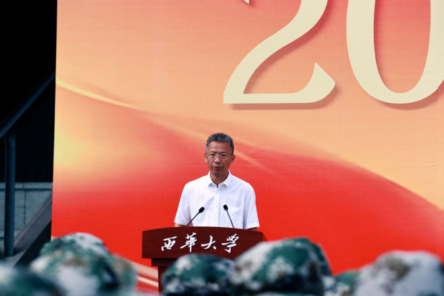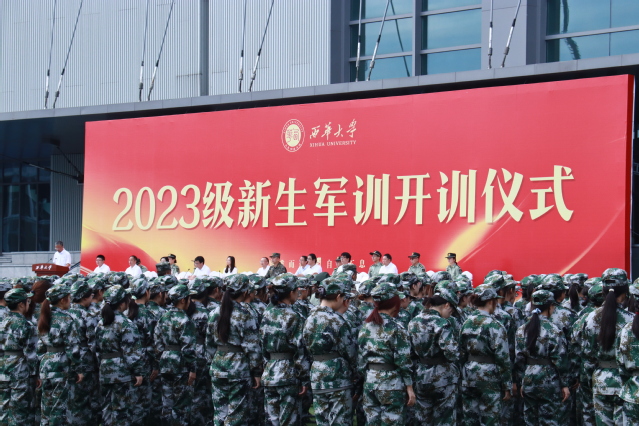 9月13日9:00,晨光熹微、碧空万里。宜宾校区于科创中心田径场举行2023级新生军训开训仪式,武警宜宾支队大队长付乐少校,校党委书记刘树根,校党委副书记张力,副校长费凌以及学校军训工作领导小组相关职能部门负责人及相关学院负责人参加开训仪式,开训仪式由张力主持。