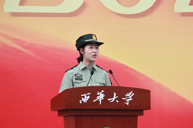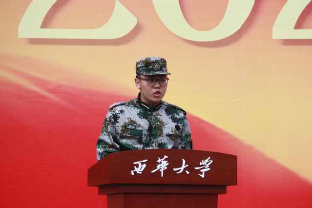“顺境固然人人期望,但逆境之奋进则更让人斗志昂扬。”政治指导员代表、机械工程学院黄霭琳老师发言表示,学生应该相互团结,在军训过程中形成珍贵的团体意识与坚强意志,鼓励新生在大学伊始学会独立面对人生中的艰难困苦,并代表宜宾校区全体政治指导员作出郑重承诺:做好军训宣传教育,激发学生参训热情,严格遵守军训纪律,争做参训学生榜样,立足本职岗位工作,做好军训后勤保障。