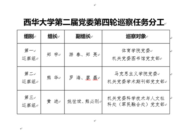 附:Beat365唯一官方网站第二届党委第四轮巡察任务分工表