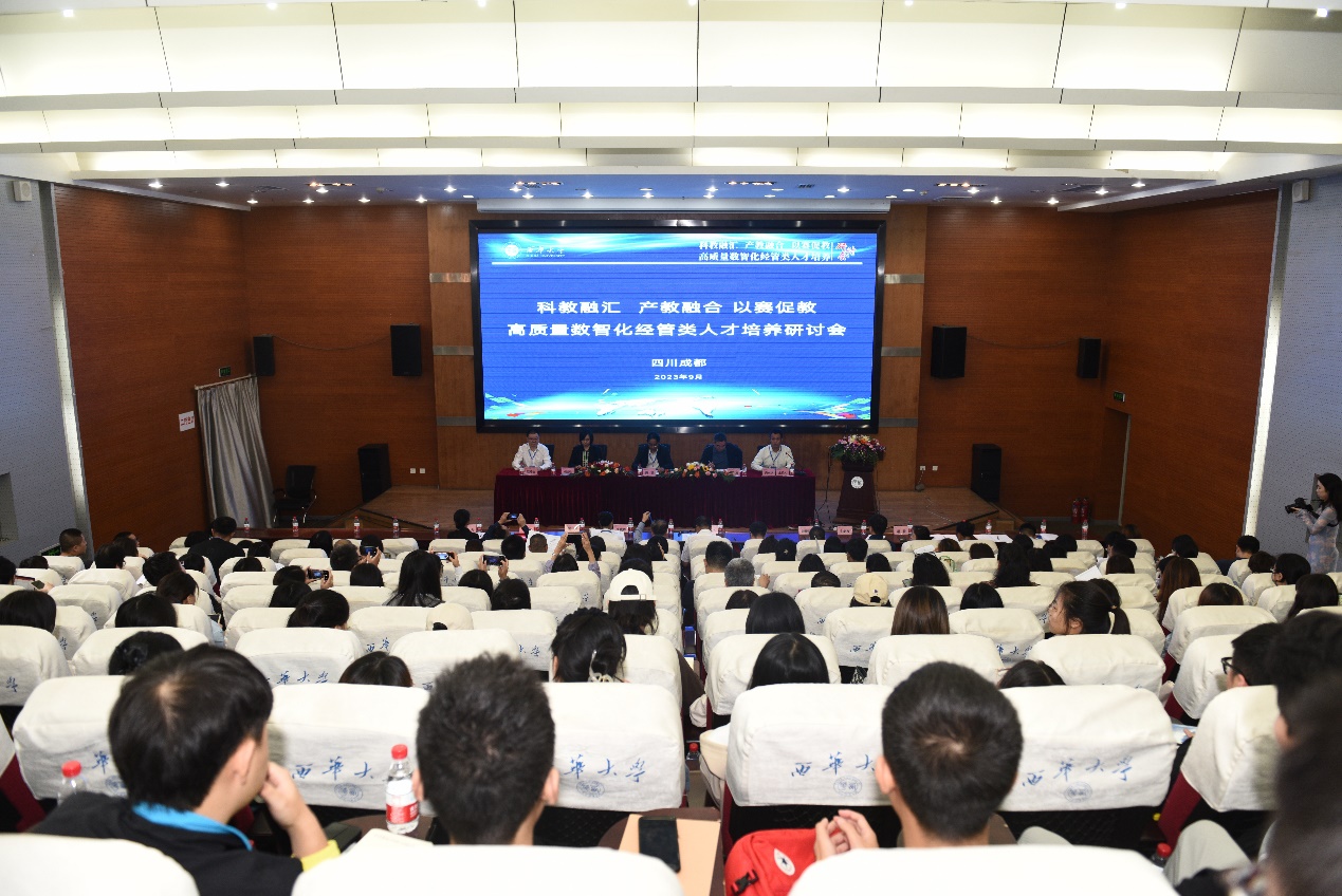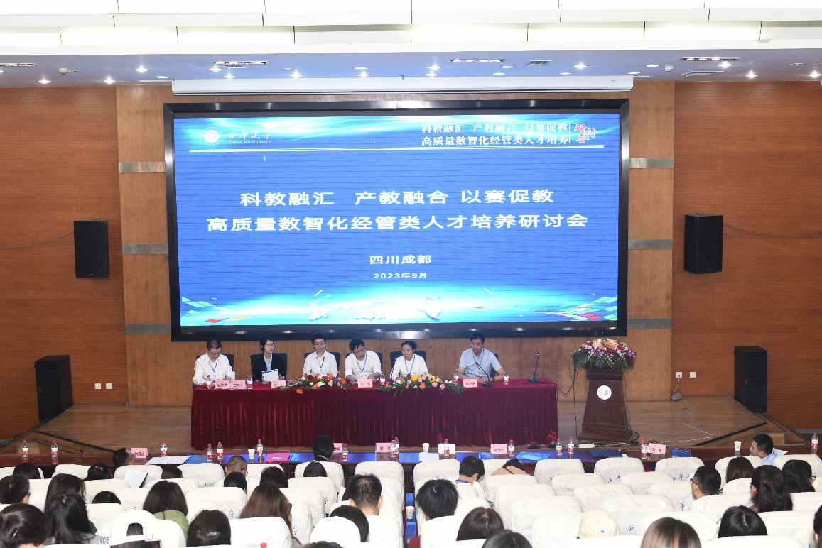 开幕式结束后,四川农业大学经济学院院长蒋远胜作题为《农金交叉、数金融合,培育“助农兴农”的新型金融人才》的主题报告,四川轻化工大学管理学院院长黄英杰作题为《数智化管理革命及川酒产业高端发展的未来》的主题报告,新道科技股份有限公司副总裁侯爱华作题为《数智赋能、融合创新,助推高质量人才培养——数字商科人才培养转型新思路》的主题报告,Beat365唯一官方网站管理学院院长赵修文作题为《数智化管理人才培养的思考与探索》的主题报告。