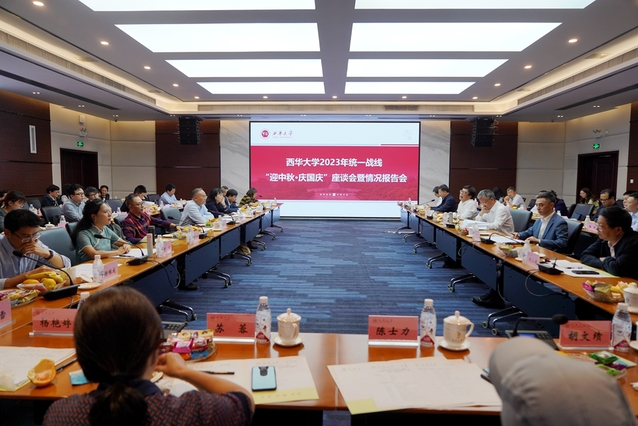 金秋九月,丹桂飘香。在中秋、国庆“双节”来临之际,9月26日下午,学校在郫都校区办公楼101会议室召开2023年统一战线“迎中秋·庆国庆”座谈会。校党委书记刘树根,校长李秋实,校党委副书记张力,副校长刘小兵、郎方年和各级人大代表、政协委员、省政府参事、省文史馆员,民主党派、统战团体主要负责人及代表、无党派人士代表、归国留学人员代表近40人出席会议。会议由张力主持。统战工作领导小组成员单位及相关部门主要负责人列席会议。