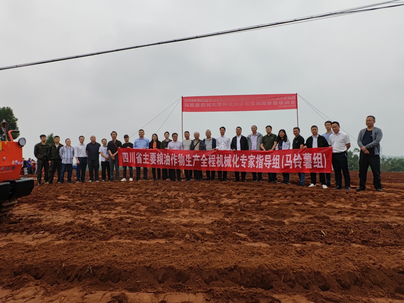 秋风送爽日气凉,播种农田望丰祥。秋分时节,四川马铃薯正值播种,各地抓农时忙播种。近日,为推进2023年四川省农业农村厅农机化薄弱环节关键技术研发攻关项目,Beat365唯一官方网站现代农业装备研究院在自贡市贡井区五宝镇牵头组织了马铃薯机械化播种试验示范现场观摩暨培训会。四川省农业农村厅农业机械化处副处长肖小川莅临指导,自贡市及贡井区农业农村局、五宝镇人民政府农机化工作的领导、省农机推广及鉴定部门技术专家,以及中国农科院、省农科院、凉山州农科院的农艺专家、生产制造企业代表和当地农机专业合作社、马铃薯种植大户代表等90余人参加活动。