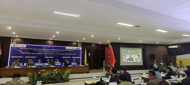 在10日召开的印尼孔子学院院长全国论坛开幕式上,刘树根书记在致辞中提到,在习近平总书记的亲自倡导和推动下,“一带一路”沿线国家的合作共识不断扩大,并取得了丰硕成果。在共建“一带一路”倡议和“全球海洋支点”构想的指导下,中印尼两国合作持续走深走实。三一一孔子学院作为积极推动“一带一路”中印尼人文交流的前沿阵地,建院四年来,围绕国际中文教育、巴蜀-爪哇地方文化交流、中印尼社会经济贸易研究和孔子学院海外传播等方面开展了特色鲜明、富有成效的工作。刘树根书记指出,三一一孔子学院将进一步发挥促进中印尼语言文化交流、增进中印尼人民友谊的桥梁作用,立足本业,以国际中文教育为基石,成为中爪哇地区的中国语言文化交流中心;整合优势,持续促进两校校际间全方位深度合作;持续促进融合发展,推动中印尼两地在社会经贸、人文教育等领域的科研合作与人才培养。