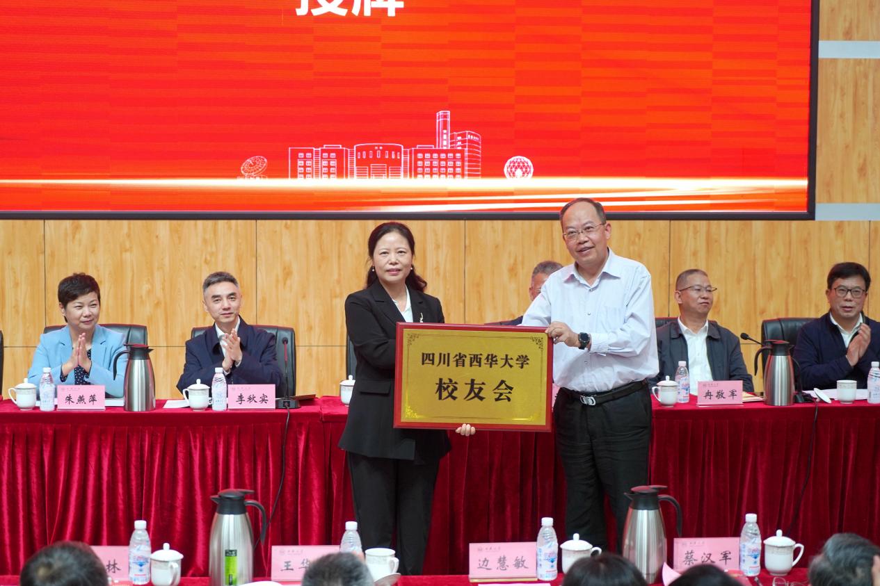 省民政厅二级巡视员冉敬军宣读了四川省民政厅《关于准予四川省Beat365唯一官方网站校友会成立登记的批复》文件。国家督学,中共四川省委教育工委委员,省政府教育督导委员会专职副主任,教育厅总督学傅明为四川省Beat365唯一官方网站校友会授牌。随后,主席台领导为首届四川省Beat365唯一官方网站校友会理事、监事颁发了聘书。