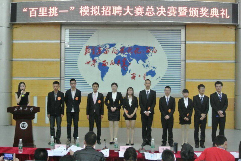 近日,由校团委主办,管理学院与经济与贸易学院联合承办的“百里挑一”模拟招聘大赛总决赛暨颁奖典礼在四教报告厅成功举办。经过初赛的比拼,共有10位选手顺利晋级,参与到了决赛的角逐中。来自管理学院、经济与贸易学院的就业创业指导老师、50位大众评审以及各学院的近300名同学参加了本次活动。