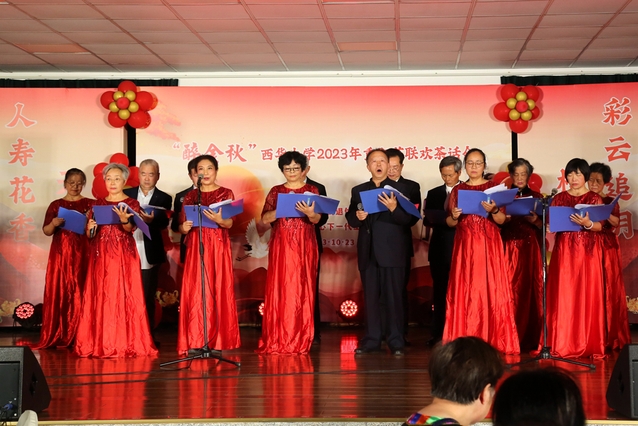 最后,重阳节联欢茶话会在全场齐唱《歌唱祖国》声中落下帷幕。