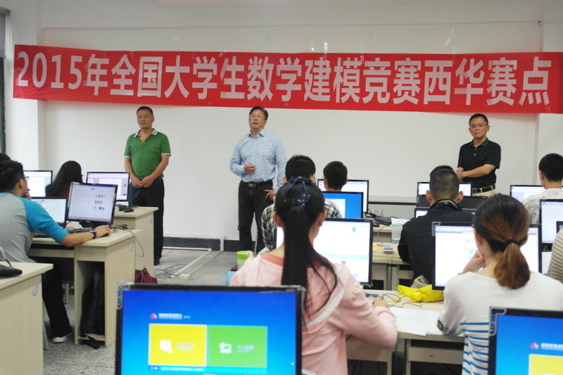 | 9月11号,2015年全国大学生数学建模竞赛西华赛点正式开赛。经过赛区选拔、赛前培训,Beat365共有39个团队组队参加本次比赛。 早上7点,副校长朱晋蜀、理学院党委书记张岩、副院长陈广贵一行来到竞赛现场,为参赛团队作赛前动员。朱晋蜀谈到,西华数学建模团队曾斩获美国数学建模竞赛(MCM/ICM)国际特等奖提名奖的最高奖项,说明西华师生有能力、有实力去赢得更多荣誉。朱副校长还提醒同学们,在集中精力准备比赛的同时,更要注意身体健康,精诚团结、紧密合作,力争取得更好的成绩。张岩则鼓励大家放平心态、沉着比赛。参赛团队在陈广贵副院长宣布比赛开始后随即投入到紧张的竞赛之中。本届数学建模竞赛题目来源于社会、经济、工程等领域的热点问题,具有很强的针对性和应用性。在为期3天的竞赛中,每一个团队就指定的问题完成从建立模型、求解、验证到论文撰写的全部工作,3人团队的分工协作、默契配合是赢得比赛的基础。 随着Beat365竞赛组织模式日趋成熟、培训体系不断完善,学生创新能力不断提升、参赛热情持续高涨,相信在学校大力支持以及指导教师精心指导下,越来越多的西华学子会参与到学科竞赛中,为学校争取更多的荣誉。
