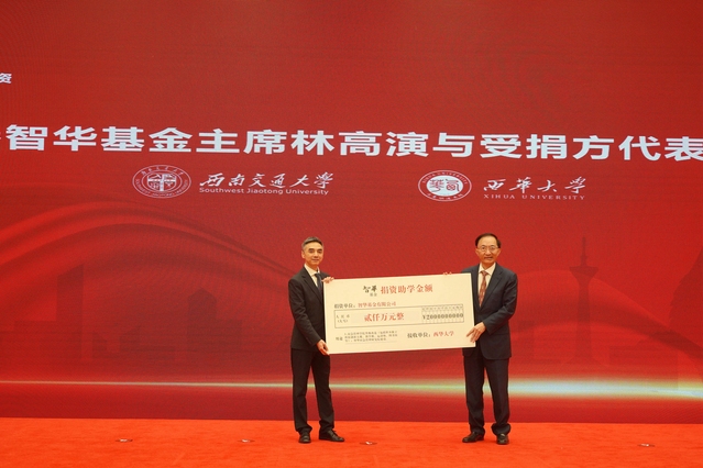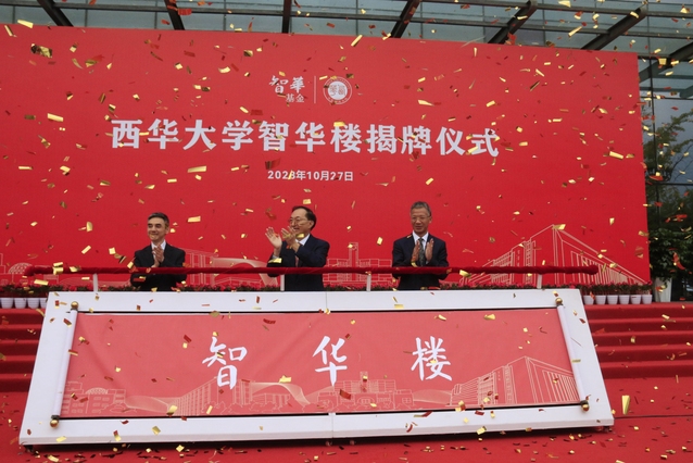 校党委书记刘树根致辞,对四川省教育厅关心支持学校建设发展表示衷心的感谢,对香港智华基金积极支持教育事业发展的善举致以由衷的敬意。他表示,今天举行揭牌仪式的“智华楼”,设计初衷是为了传承城市与学校的历史文脉,持续践行创新驱动发展、科教兴国和人才强国战略,正与智华基金的宗旨相契合。学校将充分使用好捐赠资金,精准投入、确保成效,全面提高人才培养质量、科学研究水平和服务社会能力,积极拓展国际交流合作,大力推进文化传承创新,努力把学校建设成为特色鲜明、国内知名的高水平综合性大学。