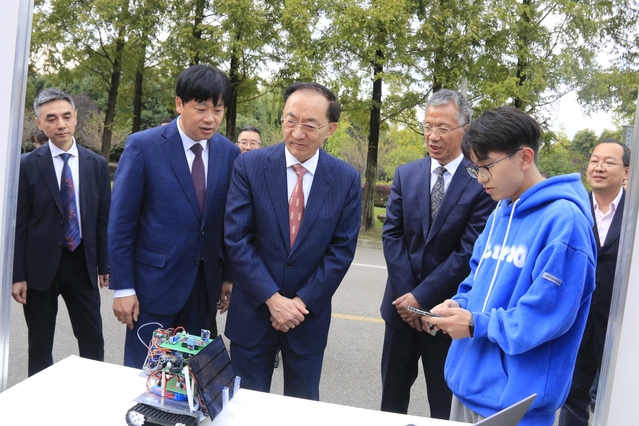 沿着艺术大楼一路行来,林高演先生一行参观了学生科创集市和学校科技成果展。从汽车与交通学院学子设计的纯电动方程式赛车到美术与设计学院学子设计的旅游文创产品,从航空航天学院的新能源电池检漏仪产品设计到食品与生物工程学院的健康营养原浆产品生产技术……来自各个学院的师生科技创新作品和成果,展示了西华人务实、创新、追求卓越的精神。在参观智能空地融合载具及管控教育部工程研究中心装备展时,林先生对中心的各种装备表现出浓厚的兴趣,从产品特色、智能化等方面详细了解无人机的应用前景。参观过程中,林高演先生对西华的校园环境表达了高度赞美,对丰富多彩的学生活动和让人耳目一新的科技创意赞不绝口,鼓励同学们积极创作,全面发展,对这些科研作品的未来充满期待,认为大家在Beat365唯一官方网站读书是在享受非常美好的人生。