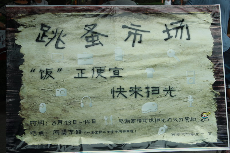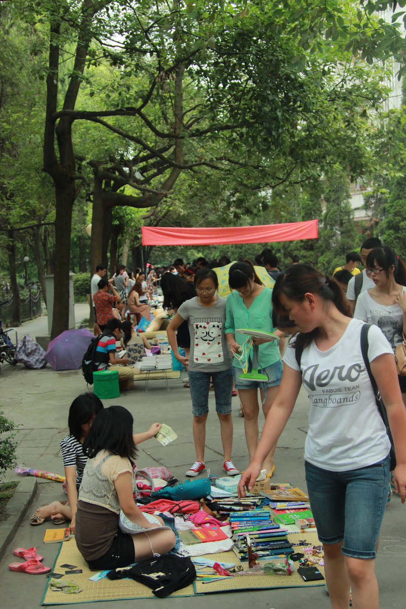“诶,学妹,你看看这个包吧,质量可好了,贱卖贱卖,快点抢购,不然你一会儿就买不到了。”“大家快来看,快来瞧,这里的东西物美价廉啊,看看吧,总有你需要的东西的,喂,不要走啊......”跳蚤市场上,大四同学眉飞色舞,精力充沛,站在自己的摊位前吆喝着:“走过路过,千万不要错过,本店货品充足,任你挑、任你选,价格绝对公道,质量绝对有保障,假一赔十了,嘿!”