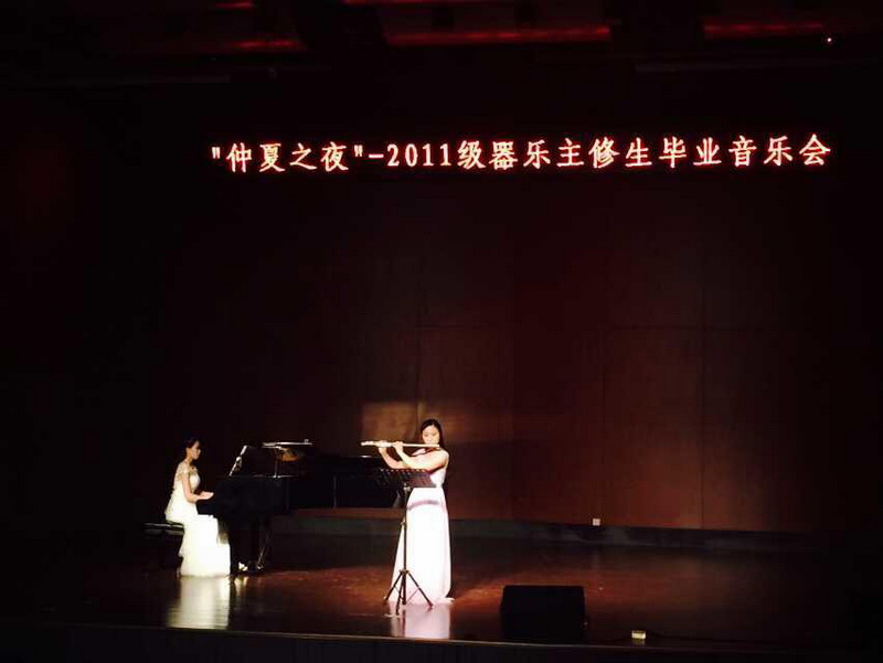 6月4日晚7点30分,艺术学院“仲夏之夜”——2011级器乐主修生毕业音乐会在艺术大楼C区音乐厅拉开帷幕,学院200多师生前来聆听了此次音乐会。本次毕业音乐会的演奏者分别是2011级萨克斯主修生何新、长笛主修生王丹和钢琴主修生陈迪。
