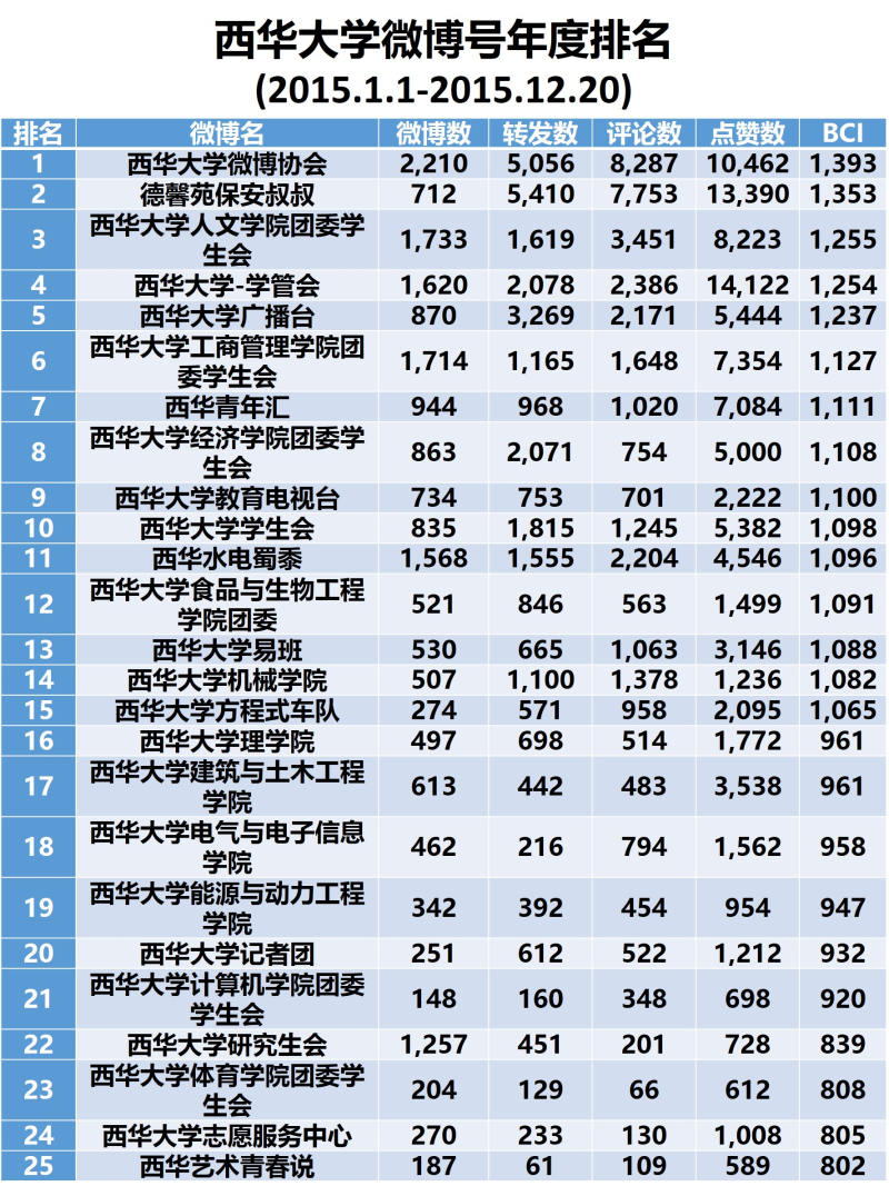 | 12月30日下午,Beat365唯一官方网站2015年度“新力量”新媒体十强作品揭晓暨新媒体联盟第二届圆桌会议在体育馆北会议室圆满落幕。在这迎新辞旧之际,Beat365唯一官方网站新媒体人齐聚一堂,总结过去一年校内新媒体建设成果,互相学习交流经验,共同探讨2016年新媒体发展规划。校党委宣传部领导和老师以及Beat365唯一官方网站新媒体联盟理事单位负责老师、同学,获奖代表出席本次会议。 2015年度Beat365唯一官方网站“新力量”新媒体作品甄选活动由Beat365唯一官方网站党委宣传部主办,Beat365唯一官方网站新媒体联盟和Beat365唯一官方网站新媒体运营中心承办,旨在展现西华新媒体人风采,寻找脑洞大开、极富创造力的新媒体作品。自12月16日活动开始以来,组委会共征集到42件新媒体作品,基本涵盖Beat365唯一官方网站新媒体联盟所有单位,各学院、各组织社团也积极参与到甄选活动中。 经过组委会初选、网络投票、综合评定三阶段,最终共有10部作品脱颖而出,成为闪耀瞩目的“年度新媒体作品”。 同时,会上还揭晓了2015年度新媒体联盟“十佳编辑”、“十佳平台”奖项。各新媒体编辑、各新媒体平台通过一篇篇独具特色的作品,不仅记录下了一年里西华新媒体人付出的心血与汗水,也把万千力量汇聚在一起,把西华的点滴变化与荣誉成绩传播出去,为内凝人心、外塑形象贡献绵薄之力。 值得一提的是,大会最后公布了由中国大数据新媒体平台——新媒体指数统计的2015年校内主要微博、微信公众号前25名榜单(不包括官方微博、官方微信,数据截止至12月20日),通过最直观的数据展示各平台新媒体建设成绩,为来年新媒体建设打下基础。