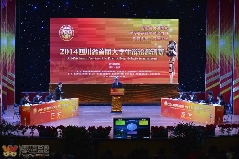 12月17日,四川省首届大学生辩论邀请赛在宜宾学院拉开帷幕。此次辩论赛共邀请来自全省的24个大中专院校代表队,围绕“实现伟大中国梦·建设美丽繁荣和谐四川——崇德向善·厉行法治”主题展开辩论。旨在引导广大青年学生强化法律意识和道德意识,积极践行社会主义核心价值观。