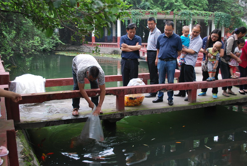偶得幽闲境,遂忘尘俗心。坐落在学校第二教学楼和第四教学楼间的楠亭苑,一直是西华师生休闲游乐的偏爱之地。目前,学校已在艺术大楼水池、三教水池、老图书馆水池投放观赏鱼,受到师生好评,应师生要求,希望在楠亭水池建观赏鱼池。后勤管理处与后勤服务总公司通过现场论证并到成都周边几个观赏鱼场进行实地考察,征求专业人士建议,学校在楠亭苑鱼池配置了400多斤观赏鱼,赢得了众多师生的好评。