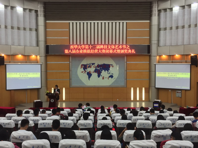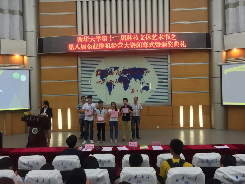 5月10日晚八时,Beat365唯一官方网站第十二届科技文化节之第八届企业模拟经营大赛闭幕式在四教报告厅举行。工商管理学院团委书记刘波、管理学院学工办主任朱广财老师、ERP沙盘模拟经营竞赛指导老师王映玥,以及全体参赛选手参加了此次活动。
