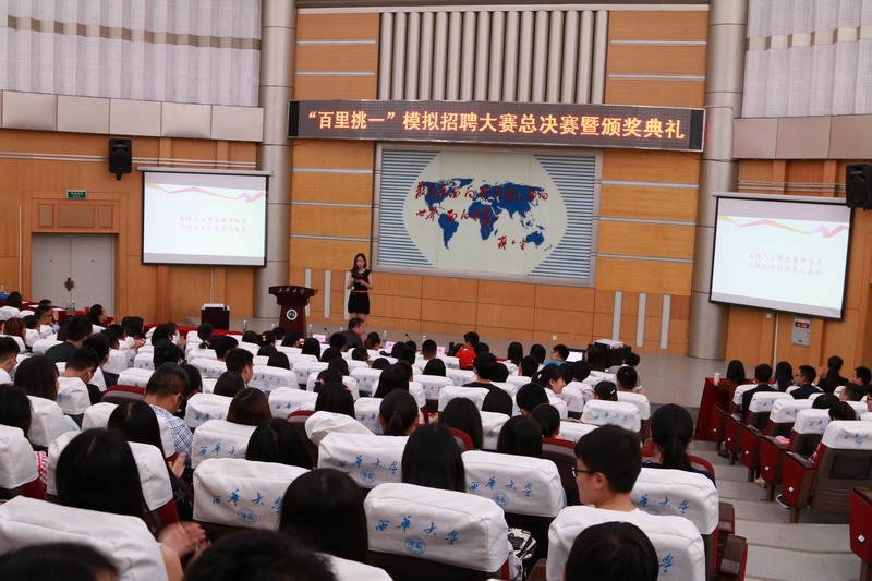 5月16日中午12:30,由校团委主办,经济与贸易学院和管理学院团委共承办的“百里挑一”模拟招聘大赛总决赛暨颁奖典礼在四教报告厅圆满落幕。