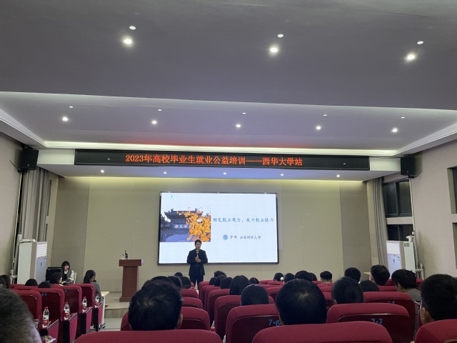 西南财经大学学生职业规划与就业指导中心副主任、成渝地区双城经济圈高校就业创业“双百”导师团专家、“智汇巴蜀”川渝大学生职业指导百名专家团专家罗锋应邀作了题为“转变就业观念,提升就业能力”的专题讲座。授课内容主要涵盖了毕业生就业形势、校园招聘趋势、名企秋季校园招聘解读以及毕业生求职建议这四个模块。
