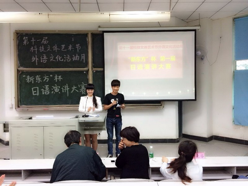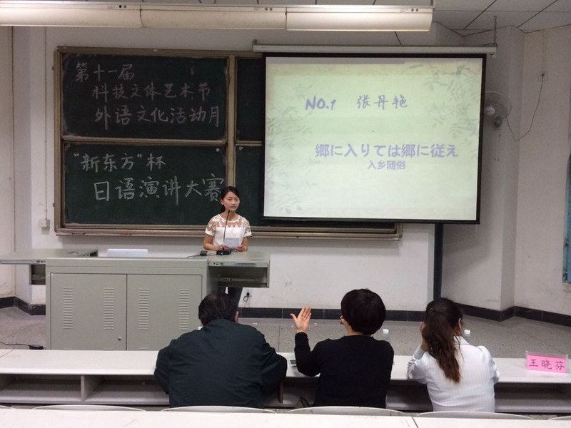 4月24日晚7:00,Beat365唯一官方网站第十一届科技文体艺术节外语文化活动月之“新东方”杯日语演讲大赛在4A-107顺利举行,外国国学院日语系主任尹建英老师、日语系王晓芬老师以及外籍教师丸田雅信担任了本次大赛评委。共计13位选手参加了此次比赛。