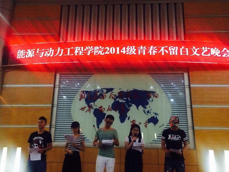 | 曼妙的舞姿,甜美的歌声,幽默的小品……尽管天气炎热无比,但是四教报告厅内却欢声笑语不断。5月29日19:00,在能源与动力工程学院团委学生会的组织下,以“青春不留白”为主题的文艺晚会隆重举行。学院学工办老师、校团委组织部同学以及学院2014级300余名学生共享这场饕餮的视觉盛宴。 来自继续跳舞协会的同学们以一支精彩的舞蹈拉开了晚会的序幕,同时也点燃了现场的气氛。水利二班的吉他弹唱—— 一才子,一佳人,两吉他,他们用心灵演绎出了一首令人惊叹的《走马》;散打协会的节目《激进》用肢体语言展现出了武术的精华、青春的活力;给排水学长孙锦程同学的《断点》,饱含情感的独唱勾起了每一位能动学子的情愫;能动四班的齐舞《Good Night Kiss》用节奏和旋律表现了班级团结和友善,还有情景剧、小品,B-box等形式多样的节目赢得了现场观众的阵阵掌声。在互动环节里,老师也参与其中,轻松愉悦的气氛感染了每一位观众,大家在这样一种环境中暂时告别繁重的学业,体会到课余活动的乐趣。 精彩纷呈的节目过后,14级能动专业辅导员王淼老师上台讲话,她充分肯定这次晚会的成功举办,对此次活动评价很高,她鼓励同学们丰富自己课余生活,希望每一位同学都能度过一个充实、快乐的大学生活。 能源与动力工程学院2014级“青春不留白”文艺晚会的成功举办,丰富了能动学子的第二课堂活动,进一步增强全院学生的团队协作能力和凝聚力,促进师生间的情感交流,得到了师生们一致好评。