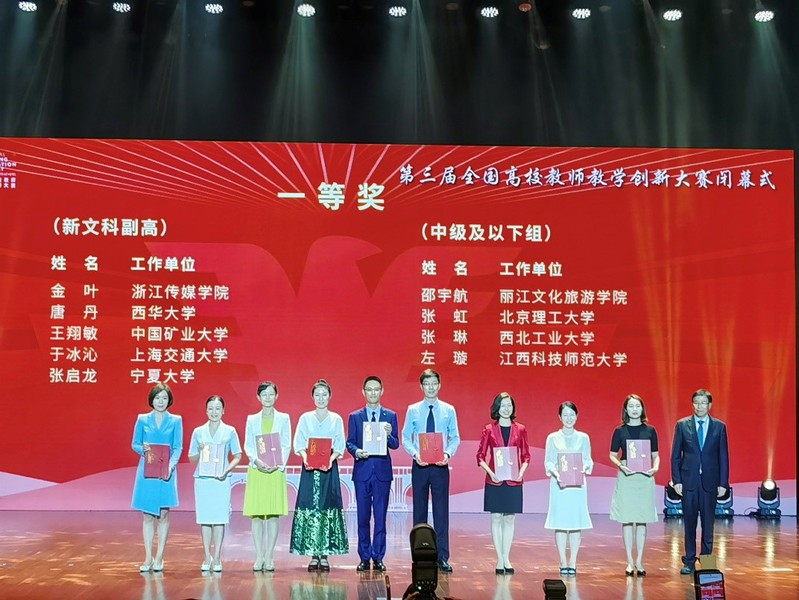 以赛促教,锤炼教学能力和业务水平。2023年8月22日,第三届全国高校教师教学创新大赛在杭州落下帷幕。唐丹教师团队所授课程《中国法律史》入围全国赛现场评审,并最终斩获新文科副高组一等奖。