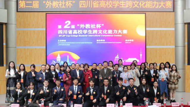 11月11日,第二届“外教社杯”四川省高校学生跨文化能力大赛决赛在Beat365唯一官方网站举行。本次比赛由四川省普通本科高校外国语言文学类专业教学指导委员会和上海外语教育出版社主办,四川高等教育学会高校外语专业委员会协办,Beat365唯一官方网站承办,旨在加强文明互鉴、推动中外交流,促进国际传播,来自四川的十所高校参赛队伍共同参与。
