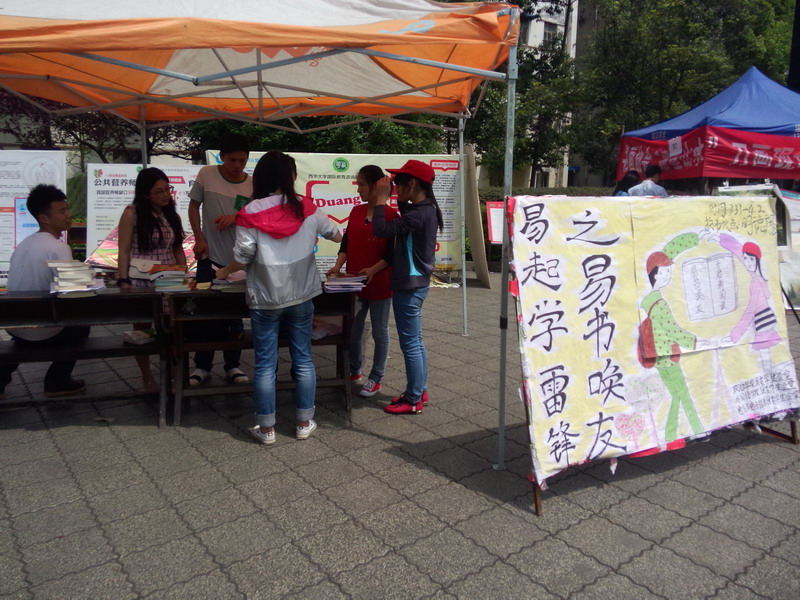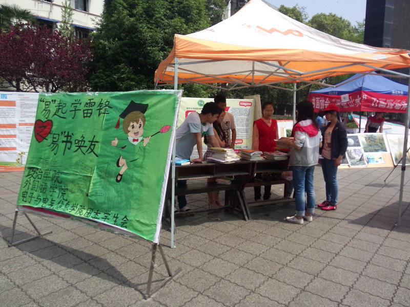 三月是学雷锋月,为积极响应校团委号召,进一步学习和弘扬雷锋精神,政治学院于4月14日至4月16日在临江苑宿舍园区、德馨苑宿舍园区以及明德广场开展了为期三天的“易”书唤友志愿者活动。本次活动由政治学院、电气信息工程学院和外国语学院联合主办。