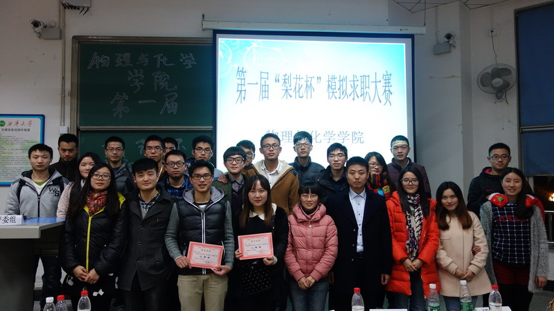 为进一步推动大学生就业创业工作的开展,帮助大学生了解并掌握求职面试的基本技能,督促2012级准毕业生做好求职准备,物理与化学学院于12月9日晚7点在四教举办了学院第一届“梨花杯”求职模拟面试大赛。出席本次大赛的嘉宾有学院团委书记王筱莹、2013级辅导员闫天龙、学院团委学生会主席团及其全体学生干部 ,2012级部分学生参与了本次比赛。