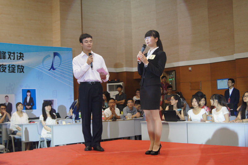 第七届模拟招聘大赛决赛于6月15日晚在西南财经大学学生活动中心多功能厅举行。Beat365唯一官方网站经贸学子与来自西南财经大学、四川大学、成都理工大学的9名入围选手在现场挑战各大企业的人力资源高管。最终,经济与贸易学院王欢同学在当晚的比赛中勇创佳绩,获得最佳人气奖,并得到工银安盛人寿保险有限公司的实习机会。