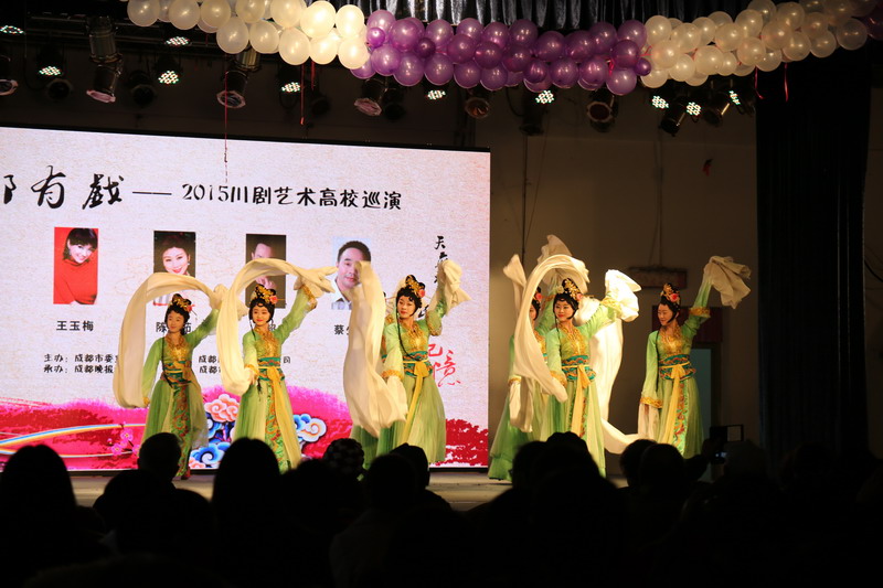 | 12月4日15:00,由中共成都市委宣传部、成都传媒主办,成都晚报社承办,成都市川剧研究院协办的“成都有戏——2015川剧艺术巡演”正式走进Beat365唯一官方网站。活动秉持以先进文化为向导,提升大学生精神境界,促进当代青年向真、善、美全面和谐发展的理念,将传统的川剧艺术与现当代流行文化相融合,通过新颖的方式把川剧艺术歌曲带进校园,使川剧更大众化、年轻化。Beat365400余名学子以及十几位老戏迷们到场观看演出。 据了解,此次前来Beat365进行艺术巡演的成都市川剧研究院是国内最负盛名的专业艺术院团之一,与上世纪最著名的川剧班社“三庆会剧社”一脉相承。几十年间,该剧院演出了大量有影响力的艺术作品,如:《白蛇传》、《柳荫记》、《激流之家》、《黎明十二桥》。与此同时,剧院也涌现出了如晓艇、刘芸、陈巧茹、王玉梅等多名国家一级演员。 在本次艺术巡演中,川剧艺术家们给西华师生共带来了9个节目,其中包含戏曲舞蹈、川剧戏歌、京胡独奏、川剧喜剧和川剧绝技等,形式多样、题材丰富。 活动以《春色满园》戏剧舞蹈开场,它巧妙地将戏剧的特色水袖与现代舞蹈元素相结合,精彩的演出赢得了台下观众的阵阵掌声;川剧喜剧《九流相公》也获得了西华学子以及不少老戏迷的高度赞赏;川剧绝技《变脸吐火、木偶变脸》将活动气氛推向了高潮。据悉,川剧变脸技巧最早起源于传统大戏《归正楼》,剧中人物贝戎为了躲避官府的追捕,九变化身,采用易容术的方法逃脱,该技巧后来逐渐走向各种舞台表演,成了欣赏川剧必不可少的项目。在此次巡演中,艺术家们更别出心裁,将大熊猫、蜘蛛侠等“接地气”的元素融入变脸,拉近了传统川剧艺术与当代大学生之间的距离。 川剧戏歌《蜀相》、《梅花绝句》、《春夜喜雨》,木偶戏《白鳝观景》,京胡演奏《夜深沉》,《俏花旦》等融入流行元素的节目同样看点十足。至此,“成都有戏——2015川剧艺术巡演”在观众们热烈的掌声中画上了圆满的句号。
