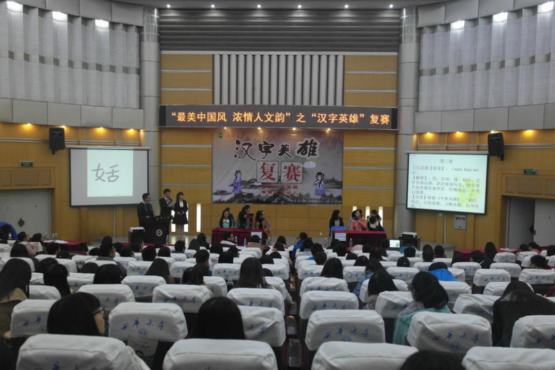 继第二届Beat365唯一官方网站汉字英雄初赛圆满结束后,11月23日晚7:00,由人文学院承办的第二届Beat365唯一官方网站汉字英雄复赛于四教报告厅举办。本次比赛的评委分别为人文学院团委书记王燕晶,物理与化学学院团委书记王筱莹,人文学院中文系教师吕蒙。各学院嘉宾及同学到场观看比赛。