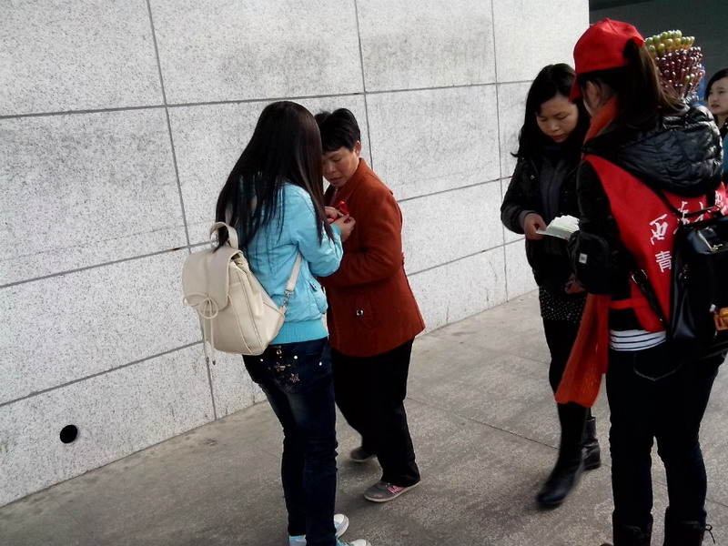 12月1日,人文学院联合其他学院的志愿者在犀浦地铁站开展了防艾宣传活动。 上午8点,分配好物资之后,志愿者们冒着严寒到达宣传地点进行防艾知识的宣传。两名志愿者穿上厚重的玩偶衣服来吸引路人的注意。志愿者们号召路人一起完成“爱的抱抱”宣传活动,很多路人都积极地和志愿者们拥抱,愿意支持本次活动。也有一些路人在经过志愿者们的耐心讲解后,才逐渐开始了解本次活动的意义。 下午5点,志愿者们结束了此次防艾宣传活动。他们的宣传活动为防艾知识的传播做了积极贡献,将会有更多人愿意去关爱艾滋病患者。 责 编:严佳 编 审:王蜀苏 |