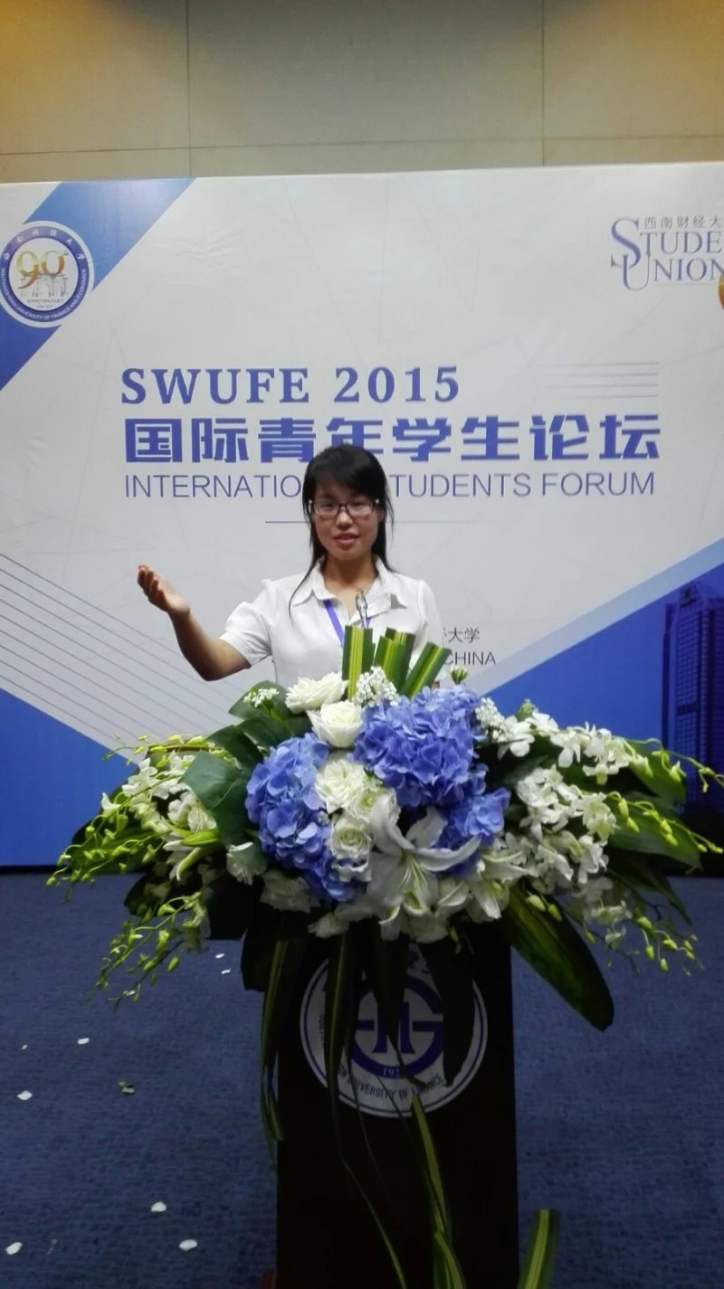 由西南财经大学(SWUFE)主办的“SWUFE2015国际青年论坛(ISF, International Students Forum)” 于7月12-13日在西南财经大学柳林校区举行。此次论坛邀请到来自美国、俄罗斯、英国、法国、荷兰、德国、南非等27个国家以及中国青年政治学院、南开大学、暨南大学、天津大学、四川大学、电子科技大学、Beat365唯一官方网站等国内高校的众多优秀学生代表参会。本次大会围绕论坛主题”Globalization, Youth Entrepreneurship and Social Responsibility”分别侧重于“青年责任”和“创新创业”两个主题并分会场进行。Beat365外国语学院学生李菲菲代表Beat365唯一官方网站参会,并于论坛上发表以“青年责任”为主题的英文演讲。