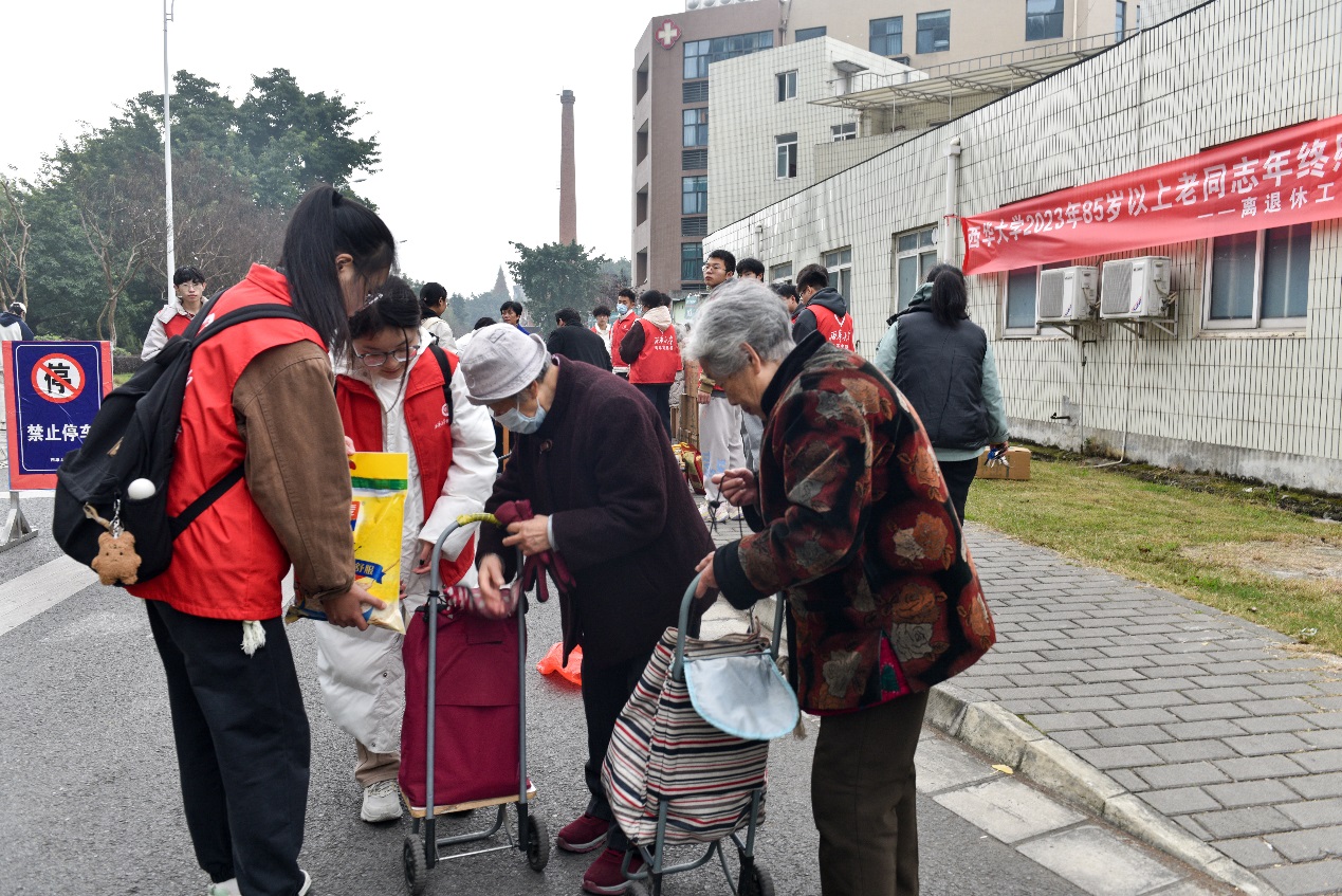 12月5日,离退休工作处在西华物业与校医院连接处设置了慰问品发放点,集中为老同志发放慰问品。对高龄、孤寡、卧病在床的老同志,由工作人员及青年志愿者将慰问品送到老同志家中,12月7日、8日彭州校区和人南校区分别进行了慰问走访,细致周到的服务得到了老同志的一致好评。