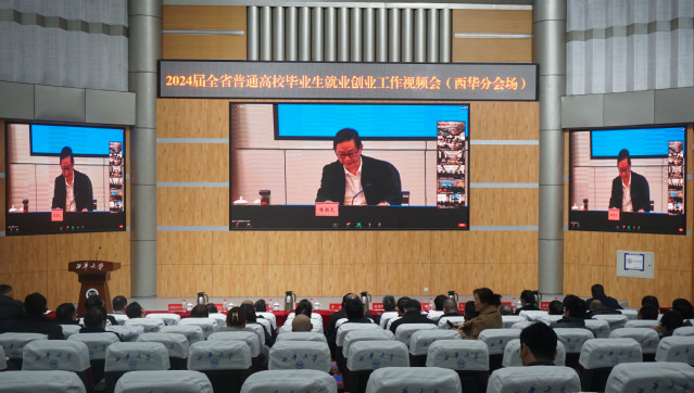 为深入学习领会习近平总书记来川视察重要指示精神,贯彻落实全国高校毕业生就业创业工作视频会和省委十二届四次全会精神,总结2023届高校毕业生就业创业工作,分析研判形势,部署2024届毕业生就业工作,12月13日,四川省教育厅、人力资源和社会保障厅联合召开2024届全省普通高校毕业生就业创业工作视频会。省委教育工委书记,教育厅党组书记、厅长余孝其,人力资源和社会保障厅副厅长、党组成员刘晓博出席会议并讲话,省委教育工委委员,教育厅党组成员、副厅长陈朝先主持会议。