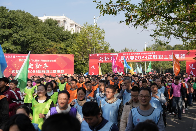 暖阳高照,喜迎新年。为增强教职工体质,繁荣校园文化,丰富教职工文体活动,12月14日下午,由校工会主办的“贯彻中国工会十八大精神 开启奋进新征程”Beat365唯一官方网站2023年教职工“迎新年健康跑”活动拉开帷幕。这是举办该活动的第15个年头,“健康跑”已经成为教职工喜闻乐见的工会品牌活动。郫都校区和宜宾校区同时举行本次活动,共有1700余名教职工参加,全程约3公里。