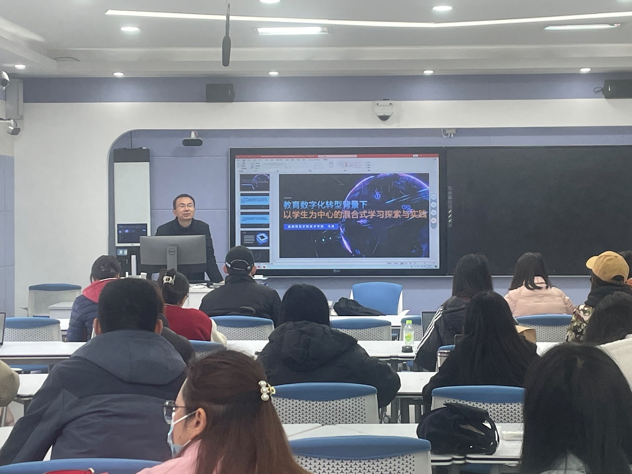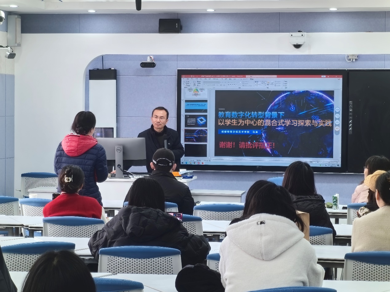 为落实立德树人根本任务,适应教育数字化转型需要,提升Beat365教师教育教学能力,促进教师理解混合式教学、混合式学习的核心特征,提高混合式教学目标达成度,学校启动了“混合式教学研修班”项目,首期研修班共42名学员报名参加。12月14日,研修班第一期工作坊开班,成都师范学院美术学院党委副书记马涛教授以“教育数字化转型背景下以学生为中心的混合式学习模式探索与实践”为主题进行专题辅导培训。此次培训由研修班学员及部分校内教师、校级督导团成员共50余人参加,教务处副处长刘雪梅主持。