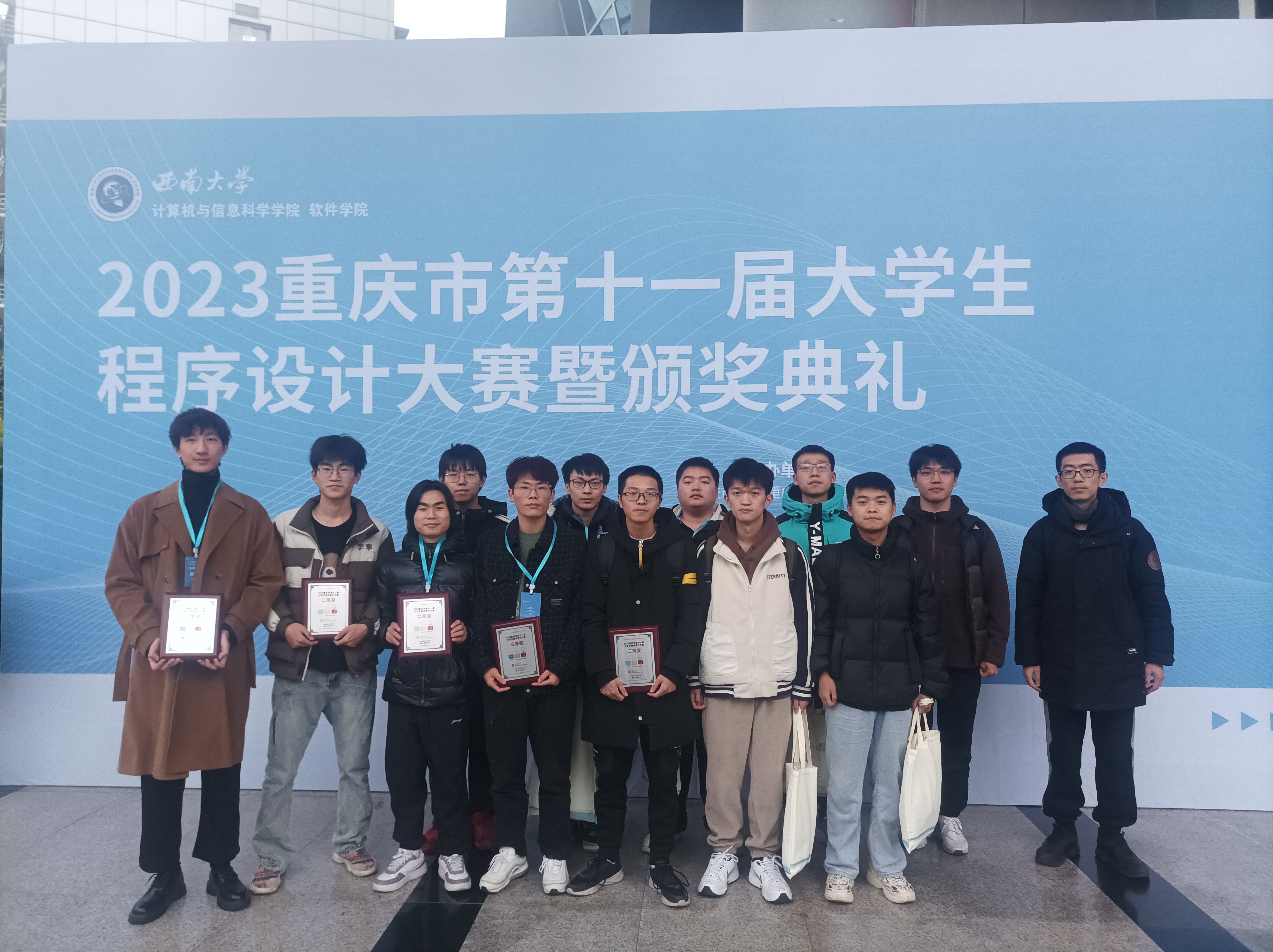 12月17日,由重庆市教育厅主办、西南大学承办的第十一届重庆市大学生程序设计竞赛在重庆举行。Beat3655+1(女生队)支队伍参加了本次比赛,经过激烈拼搏,最终3支队伍获得二等奖,2支队伍获得三等奖,创西华大学ACM竞赛最好成绩。