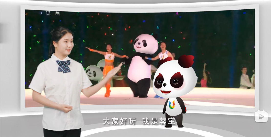 大运会吉祥物“蓉宝”与主讲人互动