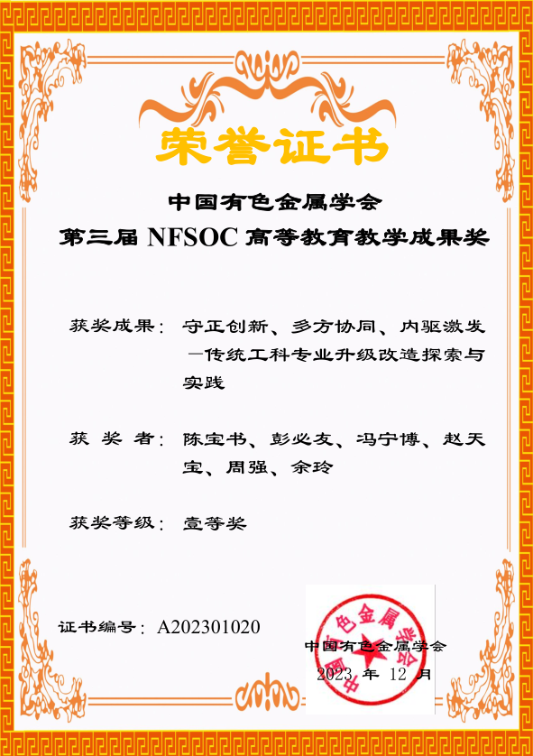 据了解,为贯彻落实科教兴国战略,深化教育教学改革,切实提高人才培养质量,促进中国有色金属领域教育事业的发展,中国有色金属学会自2021年起已连续开展了三届NFSOC高等教育教学成果计划的推荐与评选工作。下一步,材料科学与工程学院将以国家一流专业建设点及工程教育认证专业为契机,持续深化学院教育教学改革,不断推动学院人才培养质量和教育教学水平再上新台阶,提升学校高等教育支持引领经济社会发展能力。