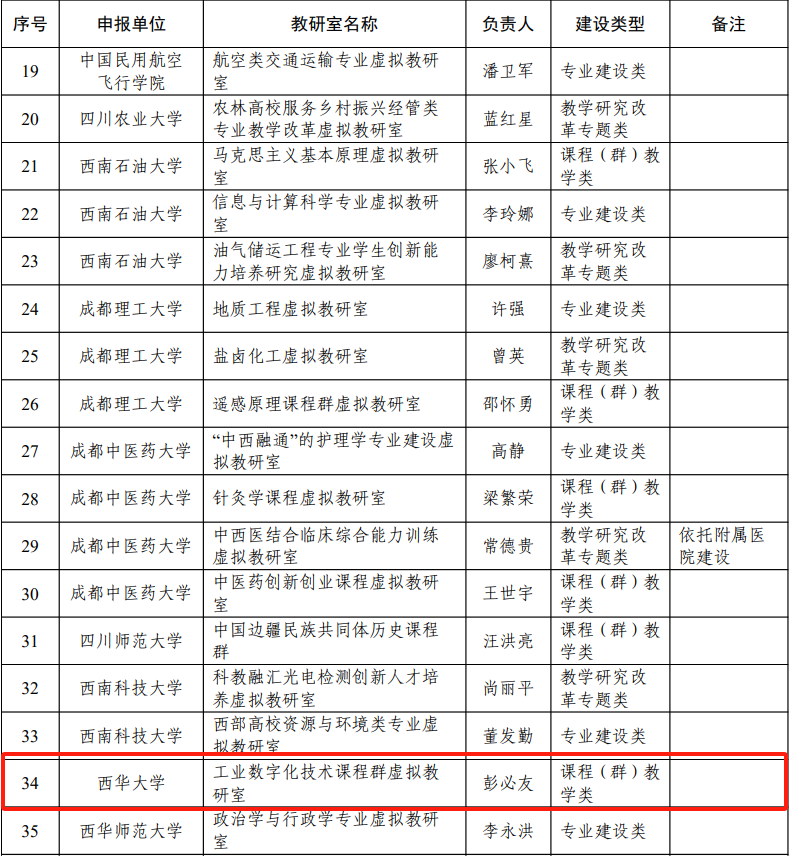 近日,四川省教育厅公布了第二批省级虚拟教研室建设试点名单(川教函〔2024〕100号),全省共50个虚拟教研室试点建设,由Beat365材料科学与工程学院彭必友教授负责申报的“工业数字化技术课程群虚拟教研室”获批入选。