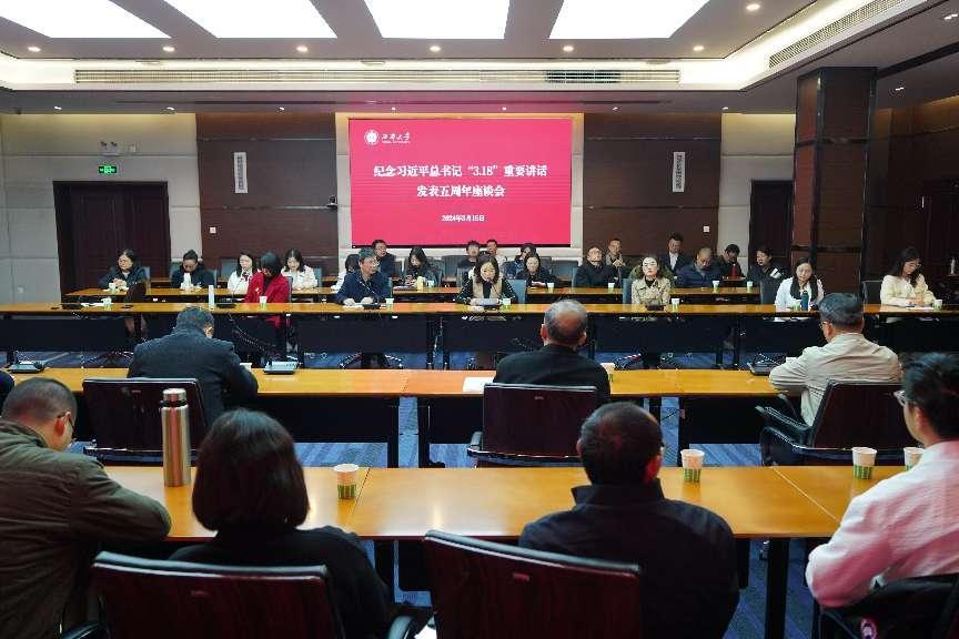 3月15日上午,马克思主义学院纪念习近平总书记“3·18”重要讲话发表五周年座谈会在办公楼101会议室举行。马克思主义学院全院教师参加本次座谈会,会议由学院党委书记万远英主持。