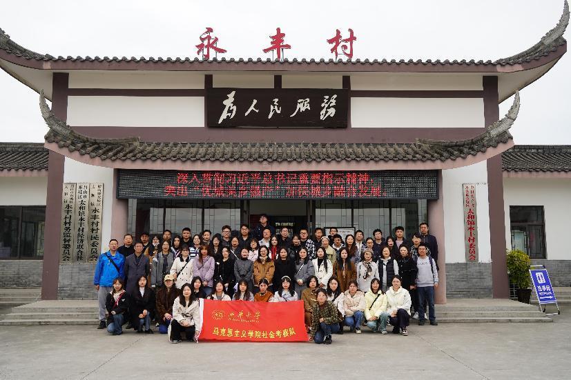 3月13日,马克思主义学院组织部分硕士研究生赴眉山市东坡区永丰村、三苏祠开展课程实践研学活动。此次研学活动是学院硕士研究生专业基础课《马克思主义理论案例分析与实践课程》教学的一部分,旨在学习贯彻习近平总书记来川视察的重要讲话精神,加强对推进新时代更高水平的“天府粮仓”建设和传承发扬中国优秀传统文化的理解和研究。本次研学活动由马克思主义学院党委书记万远英教授,院长冯永泰教授带队,该课程的10多位教师和学院2022级54名研究生参加了本次研学活动。