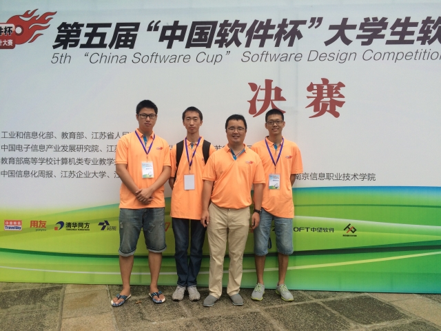 “中国软件杯”大学生软件设计大赛是由工业和信息化部,教育部,江苏省人民政府主办,中国电子信息产业发展研究院,江苏省经济和信息化委员会,江苏省教育厅,教育部高等学校计算机类专业教学指导委员会承办。大赛吸引了北京大学、哈尔滨工业大学、同济大学、西北工业大学等584所高校4093支队伍,并且包括英国、德国、韩国均由队伍报名参赛,报名人数达15000人。由中国科学院软件研究所、北京大学、清华大学、北京航空航天大学、北京理工大学、中国人民大学、北京交通大学等知名高校的专家、教授,以及来自中国民航信息股份有限公司、同方股份有限公司、石化盈科信息技术有限公司、金山软件股份有限公司、江苏国瑞信安股份有限公司等知名软件企业的技术专家共同组成的评审专家组,一起对本届大赛所提交的3000多份作品进行了细致科学的评审,最终选拔出216支队伍晋级决赛。