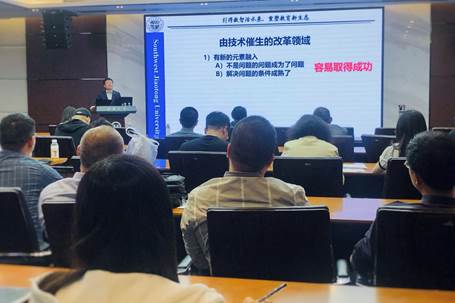 为贯彻落实教育数字化战略行动,进一步推进教育教学数字化转型,以观念转变引领行动变革,破解教师教学如何以问题导向找准关键领域,4月11日下午,西南交通大学力学与航空航天学院教授、国家级教学名师龚晖在行政楼101会议室为Beat365教师带来了主题为“引得数智活水来,重塑教育新生态”的精彩讲座。本次培训由教务处(教师教学发展中心)组织开展,教务处副处长刘雪梅主持,校内60余位教师参加了本次培训。