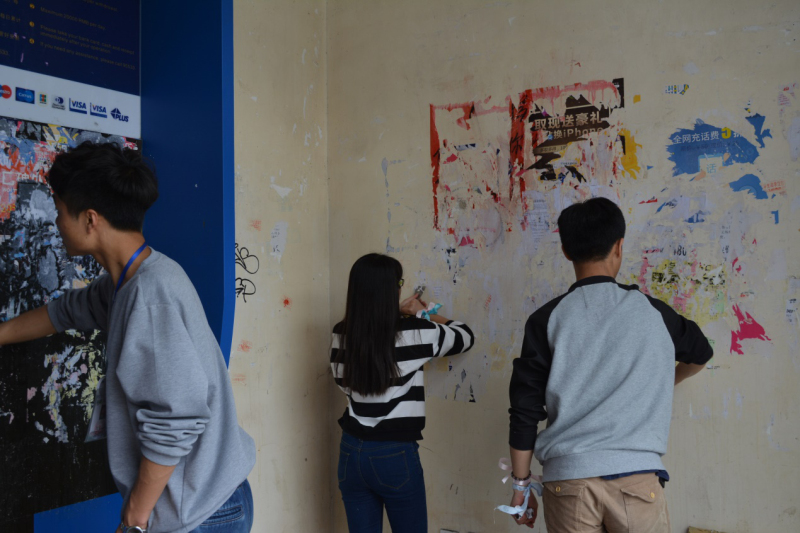 实践部的同学表示:“对那些已经清理过的区域,我们还会进行跟踪,若发现仍有张贴现象立即进行清理,同时号召有意愿的同学加入到我们的行动中来。望需要张贴广告、海报等宣传资料的组织及个人爱护校园环境,遵守学校规定将宣传资料张贴在宣传栏。校园之中还有许多地方,张贴有大量的‘小广告’,我们清除活动也才刚刚开始,在之后的行动中,我们会在清除行动中加大宣传力度,同时联系学校及相关部门整理规范校园内的乱张贴现象。”