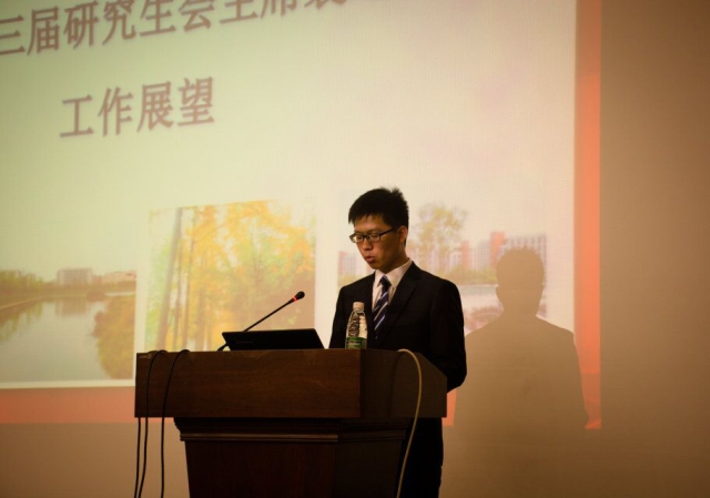 学生工作部(处)部长王大清对新一届研究生会的工作提出建设性要求,希望加强研究生在学风、校风上的示范作用,发挥研究生会的作用,提高研究生在整个学生群体中的影响力,把科技和创新创业进一步结合起来,更好地为学校服务,从而营造更好的学术氛围。