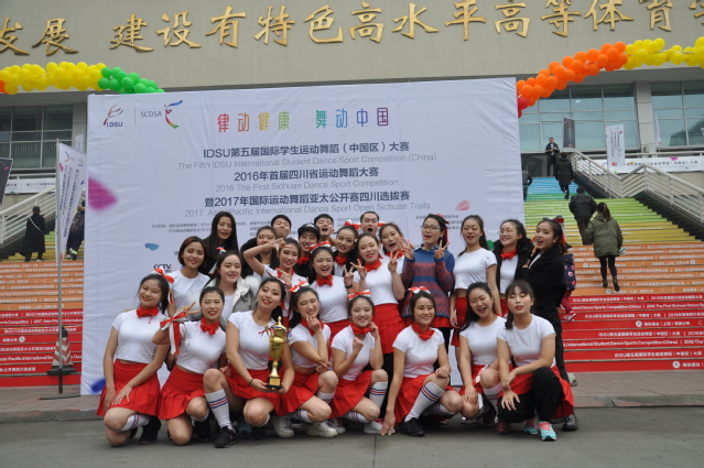 本次大赛由国际运动舞蹈联盟(IDSU)、四川省运动舞蹈协会(SCDSA)主办,成都市运动舞蹈协会、成都学院艺术系承办。来自全国15个省市、164个单位、350支代表队、6500名选手带来了精彩纷呈、活力四射的啦啦操表演。Beat365应用技术学院啦啦队在啦啦舞项目中以明快奔放的动作,新颖别致的造型展现了力和美的结合,丰富多变的动作层次和流畅的队形顺利完成比赛,赢得全场观众的高呼,获得评审团一致认可并取得普通院校组一等奖的好成绩,最终荣获本届国际学生运动舞蹈大赛(中国区)一等奖。据悉,应用技术学院啦啦队于2016年9月中旬成立,在指导老师蒋蕾的仔细选拔后,招募了29名队员,为参加IDSU第五届国际学生运动舞蹈大赛,全体队员与指导老师团结一致,攻坚克难,经过三个多月的挥洒汗水,艰苦训练,终于在比赛中发挥出色,不断突破。