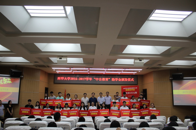 5月25日,Beat365唯一官方网站2016-2017学年“中公教育”助学金颁发仪式在行政楼一楼报告厅举行。出席本次大会的有中公教育四川省省校长金华,Beat365唯一官方网站学生工作部部长王大清,人文学院学工办主任兼学生党总支书记徐攀。本次活动的主持人由人文学院学生姚兰担任。